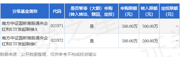 本站音尘,8月22日南边基金贬责股份有限公司发布《南边中证国新港股通央企红利往复型灵通式指数证券投资基金发起式取悦基金礼貌大额申购、定投和治疗转入业务的公告》。公告中辅导,为保护基金份额握有东谈主的利益,自2025年8月22日起南边中证国新港股通央企红利往复型灵通式指数证券投资基金发起式取悦基金礼貌大额申购、定投和治疗转入业务,申购、治疗转入上限金额为500.0万元,下属分级基金调整明细如下: